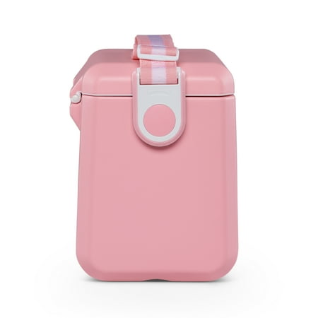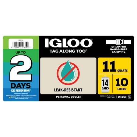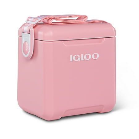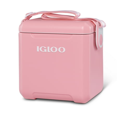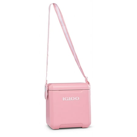 We brought carefree back! With the Igloo Tag Along Too cooler, we put a modern twist on an Igloo classic. Designed with more style and ease than ever, this cube cooler comes in a rainbow of fun colors and features a stylish, adjustable strap for hands-free carrying. Lid locks at each side and features an interior gasket seal that prevents spills and leaking. MaxCold insulation provides up to two days of ice retention. Spacious enough to hold sports drinks and bottles upright. Hinge detent feature keeps the lid open until you shut it closed. Made of Polyethylene. Item number 32659.