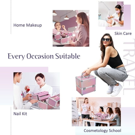 This Large makeup storage case can keep all your everything organized. It's made of reinforced Grade-A Aluminum with a silver design which is waterproof and durable. This makeup travel organizer has 4 extendable tiers and large storage space. Top tray with compartment ensures roomy space storage. This makeup organizer case comes with an attached handle on the top for convenient carry and a locking latch with keys. Prepare for traveling and all of life's amazing possibilities with this travel cosmetic case organizer.