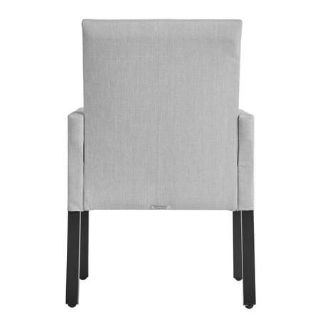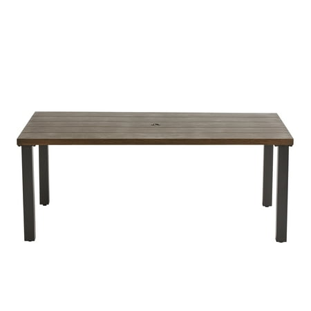 Enjoy the outdoors and entertaining in style with the Better Homes & Gardens Ellington 7-Piece Upholstered Sling Outdoor Dining Set. The 7-piece dining set includes four upholstered dining armless chairs and two upholstered dining armchairs and a 72.05" x 39.96" weather resistant embossed wood grain rust resistant steel outdoor dining table. Each chair is wrapped in durable sling with olefin blend fabric that is easy to clean and made to live in the outdoors. Both table and chairs are crafted with sturdy, black-finished rust resistant steel legs for a stylish look. The table features a transitional farmhouse style, while the outdoor upholstered dining chairs are elegant and inviting. Easily assembled with the included instructions, the Better Homes & Gardens Ellington 7-Piece Upholstered Sling Outdoor Dining Set is just one part of the Better Homes & Gardens Ellington collection (other items sold separately) and is easy to care for. Simply wipe down as needed with a damp cloth and mild detergent and allow to air dry.