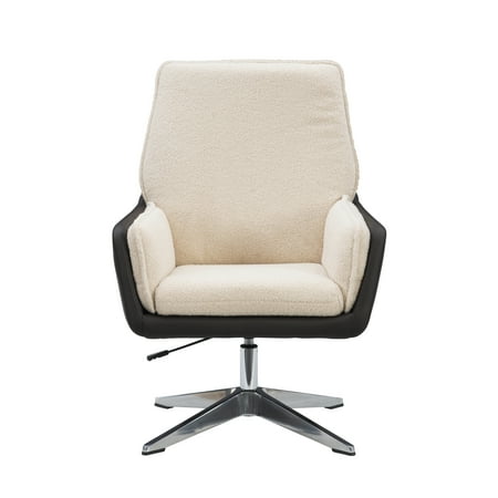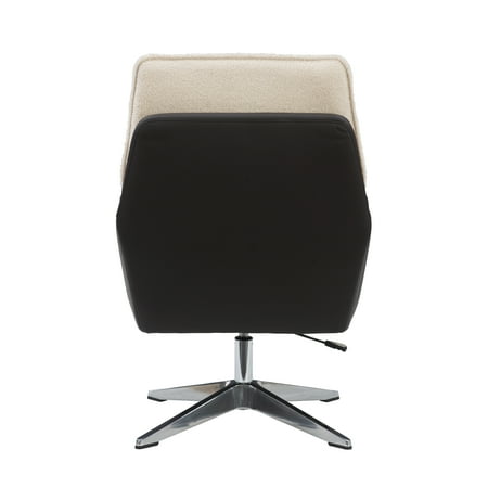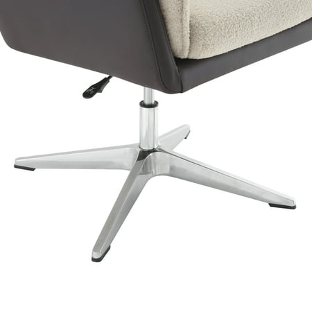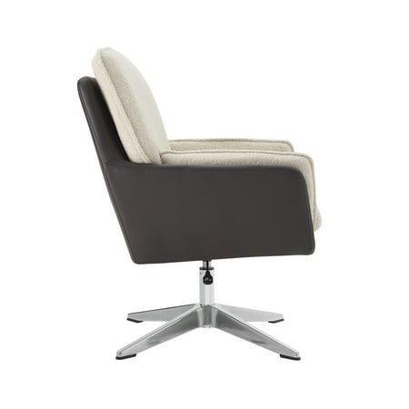 Designed with more than just modern aesthetic in mind, this swivel chair brings comfort and convenience to the forefront. A luxuriously cushioned seat is upholstered in beige sherpa fabric that’s soft to the touch and framed by a brown faux leather shell. The chrome base swivels 360 degrees and is outfitted with a gas lift for seamless height adjustments. Whether you’re looking for a contemporary style or a cozy reading perch, this chair will serve as the perfect accent piece in your living room, bedroom, home office and more.
