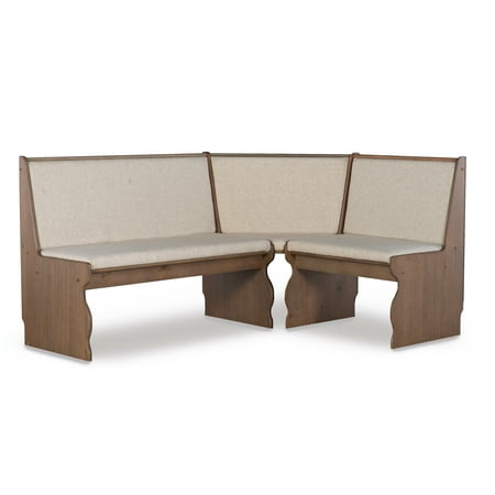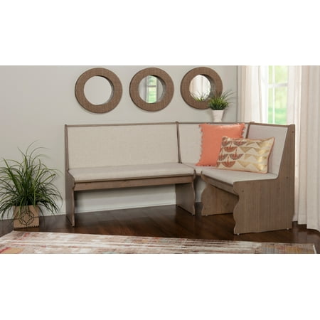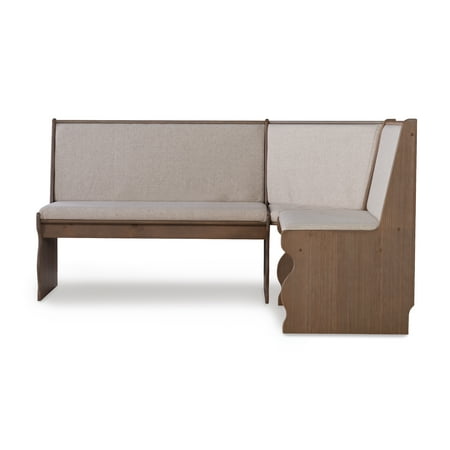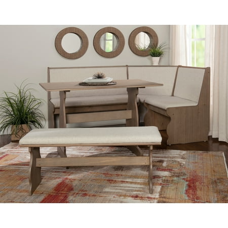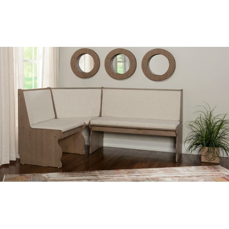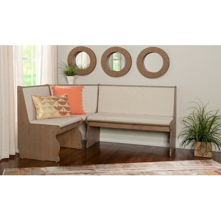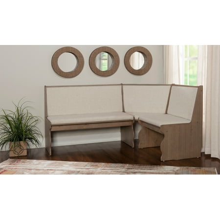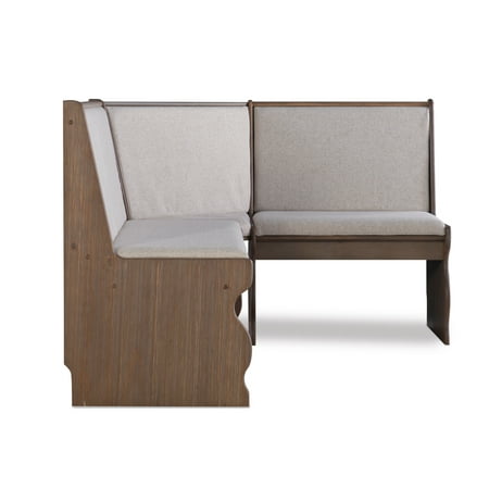 This natural wood nook is the perfect mix of traditional style with a raised grain look that will warm any space. This nook set is ideal for small kitchen spaces in any home or beach house. Can configure in either left or right handed to conform to your unique requirements. With this nook you can create a cozy spot in any corner of your kitchen, perfect for meals and conversation, a great family gathering piece. This nook provides just the right amount of space and function. Can easily fit five people comfortably around it. The set is completed by a natural wood finish with muted natural custom upholstered seats.