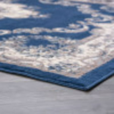 This splendid Aubusson design area rug imparts a sense of grandeur to any room. A fitting complement to traditional decorating styles or a fun piece for boho or farmhouse decor. In fashionable colors to freshen any space. Quality power loom construction of soft polypropylene yarn with jute backing offers a great value. Vacuum on high pile setting; Spot clean with water when necessary. Do not bleach. Traditional 9x13 Area Rug (8'9'' x 12'3'') Oriental Navy, Gray Living Room Easy to Clean. Good fit for living room, dining room, bedroom. Vacuum on medium pile setting to remove debris taking care to avoid fraying the edges. Spot clean with water, do not bleach. Rotate periodically to extend the life of your investment.