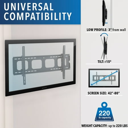 MI-303L is the solution to your wall mounting needs. Not only will it cover most screens and weights on the market, but it is built with 2mm thick steel that will last through future upgrades as well. The low profile design and modern black sleek powder finish give your TV room a contemporary look. The integrated bubble level and cable management holes make a clean looking installation easy. All necessary hardware and instructions included.