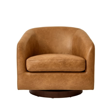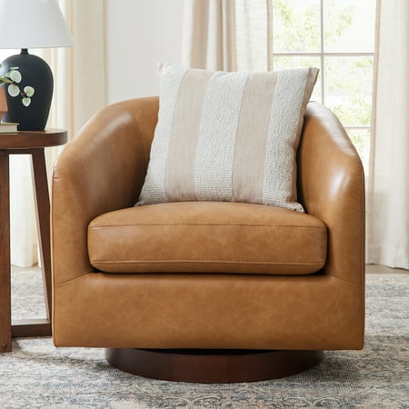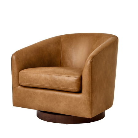 If you’re looking for refinement, style, and comfort all in one, look to the Bradford Wooden Base Modern Swivel Chair from Better Homes & Gardens. Sloped arms give this piece a sleek, modern flair, while faux leather chestnut upholstery adds an element of luxury. Built atop a 360-degree rotation swivel base, the Bradford Swivel Chair allows for full freedom of movement, making conversation easy and reducing strain and stiffness. No assembly required — this accent chair will elevate your living room, home office, or lounge straight out of the box.