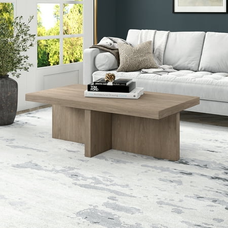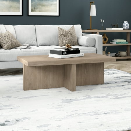 Striking in its simplicity, this Scandinavian-inspired coffee table emphasizes clean lines and straightforward design. The sturdy X-base anchors the look, while the natural wood-look finish adds texture and tonal variation to your space. Featuring a 50 lb. weight capacity and adjustable leveling feet, this 44" wide piece will imbue your living room, family room, or entertainment area with an on-trend focal point.