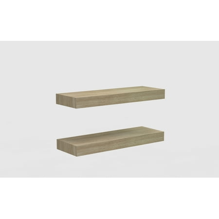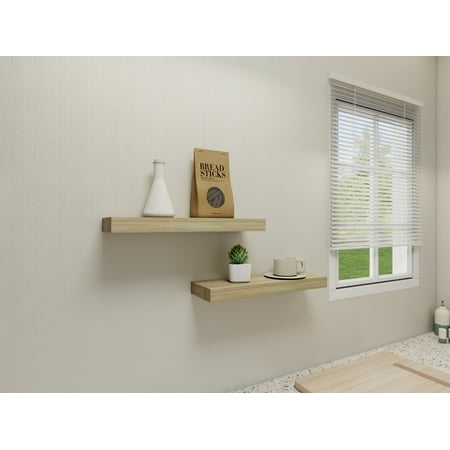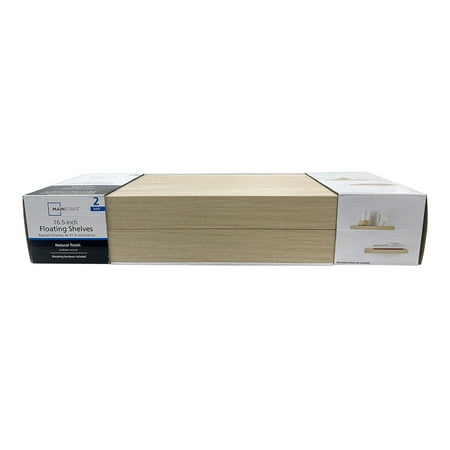 The possibilities are endless to refresh any space with the Mainstays 2pk 16.5" x 5.5" x 1.5" Set of Natural Shelves. Turn your walls into your own masterpiece by displaying books, plants, collectables and pictures. Made of beautiful MDF wood with a light natural grain finish, each board measures 16.5" x 5.5" x 1.5". These would make a thoughtful gift for new homeowners, allowing them to customize their own look. With it's sleek deisgn, these shelves will fit perfectly in that extra space you've been wanting to update in your entryway, bedroom, living room, hallway, dining room or office. It hangs securely on your walls for a trendy look in your home or office. Mounting hardware is included. Mix and match with other Mainstays home decor (sold separately).