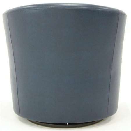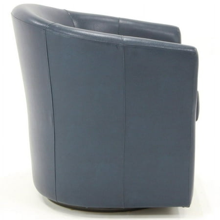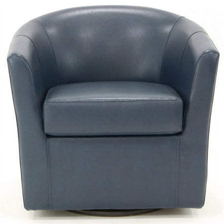 Turn an empty space into a reading nook with this swivel barrel chair. A traditional club frame gives support for your arms and back. This chair also features a 360 degree swivel base, so you can easily reposition for maximum comfort. Features: Materials: Faux leather, metal Finish: Peacock 360 Degree Swivel Base Flared arms Padded, Removable Seat for Extra Comfort Specifications: Product Dimensions: 30"H x 30.5"W x 27"D Product Weight: 34 lbs Warranty: 25 years Seat Dimensions: 19"H x 20.5"W x 19.5"D