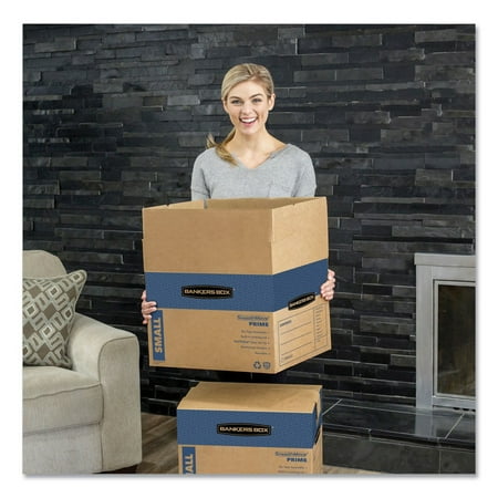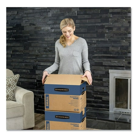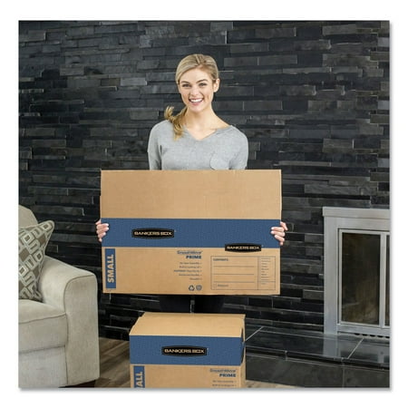 Bankers Box SmoothMove Prime Moving Boxes feature Fast assembly - no tape required. Convenient lid locks into place for secure closure. Strong, durable handles for comfortable moving and lifting. Durable double end, double bottom construction. Easy to break down and store flat until ready to reuse. Recyclable. Perfect for office or home moves. These boxes also feature no tape required closure. You do not need to use tape to close the lids on these moving boxes to keep them securely closed. Perfect for moving various different important items.