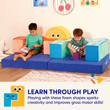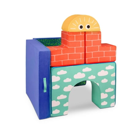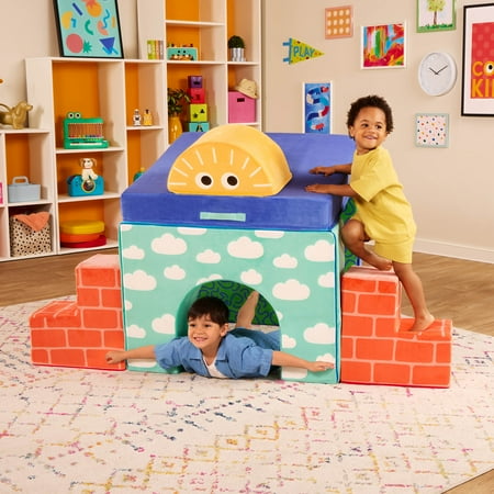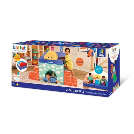 Build anything from a cozy couch to a fun fort with the Cloud Castle set from Play Space by Battat! This fort building set includes a soft and foldable foam base, an arch, a half-sun, and 2 stairs. It’s got everything kids need to build elaborate forts, cozy reading nooks, castles, or even a little couch. The foam shapes are easy for little ones to arrange and the brightly-illustrated fabric covers will inspire them as they dream up tons of fun adventures. The covers are also removable and machine-washable, making it easy to freshen things up after playtime. Open-ended and creative, this playset is the perfect fit for any play space. Recommended for kids 12 months and over. Build the ultimate playroom with the Cloud Castle set and other wonderful toys from the Play Space collection by Battat.