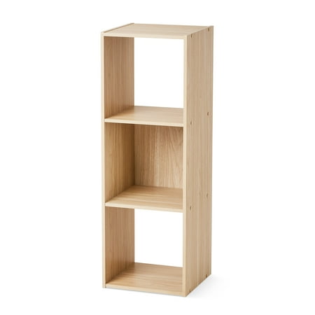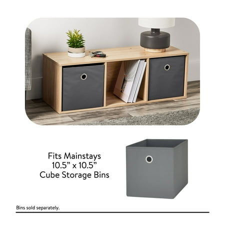 The Mainstays 3-Cube Storage Organizer features three compartments perfectly sized for storing and displaying office supplies, books, clothes, craft supplies, photos, collectibles and so much more! This sturdy bookcase can stand vertically or horizontally to best suit your needs and space. Compatible with Mainstays 10.5" x 10.5" collapsible storage bins (sold separately) and available in multiple finishes. Two open-back cube shelves make managing cords and cables easy while one closed-back shelf helps keep items securely housed. Add an accent piece that is both functional and stylish to your living room, family room, home office, playroom, closet and more, with the Mainstays 3-Cube Organizer.