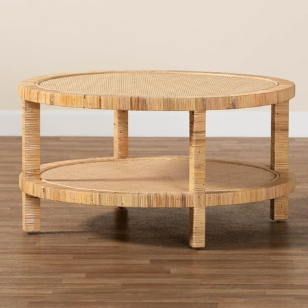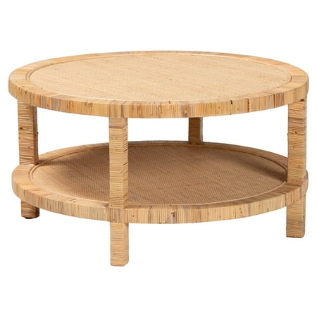 Enjoy an air of refreshing exotic ease in your space with the stunning Kalimantan coffee table. Made in Indonesia, this bohemian piece consists of a solid Mahogany wood frame wrapped in natural rattan. Its spacious tabletop utilizes a broad, round silhouette to adeptly complement a variety of room layouts while the open shelf offers convenient storage space. The Kalimantan will arrive fully assembled and features straight legs that provide excellent stability and support while producing rich geometric charm. A sleek rendition of rustic craftsmanship, the Kalimantan coffee table beautifully anchors any space. Disclaimer: Rattan is a product of nature and may have variations in areas such as, but not limited to, color, pattern, grain and texture. The hair-like strands of rattan/rattan-fiber are common due to the nature of the material. Overall: 35.40" W x 35.40" D x 18.50" H; Open Shelf Space: 35.40" W x 35.40" D x 11.20" H; Tabletop: 1.00" Thick; Clearance(floor to bottom of Open Shelf): 5.50" H;