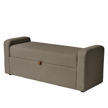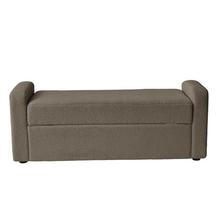 Add versatility and elegance to your home with the Better Homes and Gardens Springwood Storage Bench in a warm truffle brown. This storage bench exudes timeless sophistication with its classic boucle fabric upholstery. Meanwhile, the Dacron and high-density foam padding ensure a cozy and relaxing seating experience. The bench's hidden storage compartment offers ample space to stow blankets, pillows, and more, helping you declutter your space effortlessly. Crafted from solid and engineered wood, this upholstered storage bench guarantees durability and stability for lasting enjoyment. Elevate your decor with this stylish piece, which can act as the perfect bedroom, living room, or entryway bench, and enjoy the convenience of extra seating and storage.