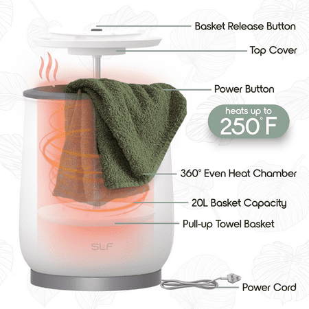 Enjoy the luxurious comfort of a warm towel after every bath with the SLF Luxury Towel Warmer! Simply place your favorite towel, blanket, or bathrobe inside of the large 20L bucket, adjust the heating timer to your liking, and get ready to be enveloped in a cozy, toasty cocoon. This towel warmer’s one-button operation makes it simple to use, while the pull-up towel basket makes retrieving your towel safe and easy! With the SLF Luxury Towel Warmer, you can experience the spa-worthy luxury of freshly warmed towels in your own home.