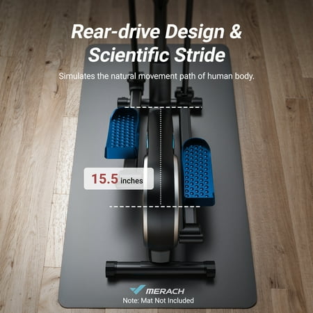 Step up your home workout with the MERACH E09S rear-drive elliptical, bringing interactive training to your home. Download the MERACH app on your phone or tablet (not included) and connect to the machine via Bluetooth. Enjoy live or on-demand workouts with expert trainers who adjust resistance for a personalized session. Explore MERACH’s Global Workouts, led by seasoned trainers in beautiful locations worldwide. Your trainer will adjust resistance to mimic the terrain as you view famous sites. Turn your living room into a private studio with the E09S, as your coach offers real-time support and adjusts resistance for a challenging workout. Use the MERACH app to track your fitness journey, set goals, and more. The E09S has a built-in tablet holder for a stable view of workouts or entertainment. Its enhanced flywheel and MRK Silent Magnetic Resistance deliver a quiet, smooth ride every time.