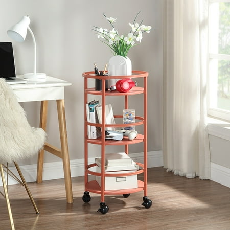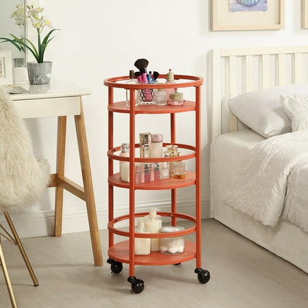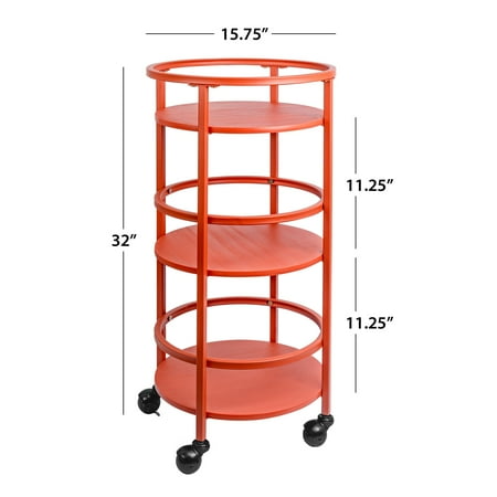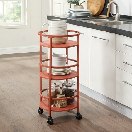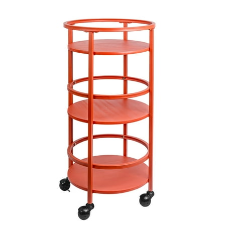 The Mainstays 32" 3-tier Round Kitchen Storage Cart is the perfect storage solution you've been looking for. Whether you need extra space for kitchen snacks, office craft supplies, bathroom toiletries, or even as a trendy bar cart, this item has you covered. The cart features three round shelves with guardrails to keep products in place. Four lockable casters allow for the cart to be displayed as an accent piece or conveniently be moved away and stored in a small space. Available in 3 colors.