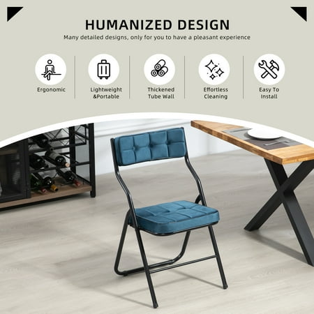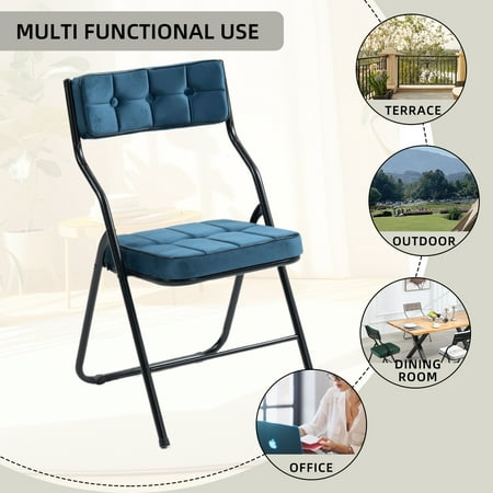 Well-designed folding chair!Steel frame with 7 colors of backrest/seat cushion, rich in texture and beautiful in shape, perfectly matched with modern home style, ready to be used as a supplementary chair; Features a stylish tufted design that looks good anywhere while the fully-contoured backrest and high-density foam seat cushion offer a great seating experience,can be used in living room, study room, coffee shop, flower shop, beauty salon and any place.