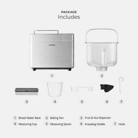 Experience an At-Home Bakery with CUCKOO's CBM-AAB101S Multi-Functional Bread Maker! Boasting functions for standard loaves like white bread and wheat bread to functions for preparing specialized loaves and desserts such as gluten-free loaves, yogurt, and homemade jam, CUCKOO's CBM-AAB101S Multi-Functional Bread Maker is the versatile baking tool your kitchen "kneads." Key Features: Versatile Baking Options: Prepare a variety of breads including white bread, wheat bread, gluten-free loaves, and even desserts like yogurt and homemade jam. Automatic Fruit & Nut Dispenser: Automatically dispenses your fruit or nuts in for you during the kneading process. Smart Automated Technology: With features such as the delay timer, schedule your baking up to 15 hours in advance, ensuring freshly baked loaves exactly when you want them. Quick Bake Time: Indulge in freshly baked bread without the wait, as our high-wattage design ensures up to 20 minutes faster baking than other bread makers. Hassle-Free Cleaning: Facilitate easy cleanup by soaking the bread pan and knead blades after removing bread, guaranteeing fresh and delicious results even after continuous use. Elevate your culinary experience with CUCKOO's CBM-AAB101S Multi-Functional Bread Maker, where innovation meets gourmet excellence!