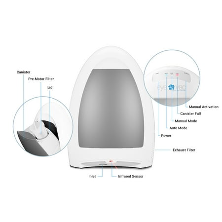 Clean smarter and not harder with the EyeVac Home 1,000-Watt Touchless Stationary Vacuum. With a stylish design, this sleek model complements any space. Don't wear yourself out bending over your dustpan: let this automatic vacuum do that hard work for you. Use a broom to sweep up kitchen crumbs and more into the innovative EyeVac and watch them disappear like magic. This electric cleaner has a 1,000-watt motor to instantly remove debris from your floors. The sensor-activated vacuum has an automatic mode to detect cat litter, wood shavings, mud, nails, and so much more. No need to spend money on canister refills, the bagless vac allows for effortless dumping right into your trash can. Fully equipped with dual high-efficient filters, this dirt and dust collector makes sure the surrounding air is breathable and clean. The EyeVac Home Touchless Vacuum is ideal for hardwood floors, mud room, kitchen, or anywhere in your home.