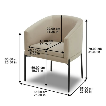 Introducing the Better Homes & Gardens Wyatt Velvet Dining Chairs in Beige - a perfect blend of functionality, style, and elegance. Sold as a pack of two, these chairs feature a high-quality velvet upholstery in a neutral beige tone that can effortlessly complement any dining room decor. Constructed with a sturdy frame, the Wyatt Velvet Dining Chairs promise durability and longevity, ensuring that you and your family can enjoy countless meals together. The chairs are designed with a padded seat and backrest, providing maximum comfort for those long, leisurely dinners. Their sleek, modern silhouette, coupled with the luxurious velvet upholstery, brings a touch of sophistication to your dining space. These chairs are not just seating furniture, they are a statement of style and comfort. Experience the perfect blend of comfort, durability, and elegance with the Better Homes & Gardens Wyatt Velvet Dining Chairs, Beige, 2 Pack. Transform your dining experience with these stylish and comfortable chairs, now available for purchase.Assembled size: 22.5" (D) x 31.1" (H) x 25.59" (W)
