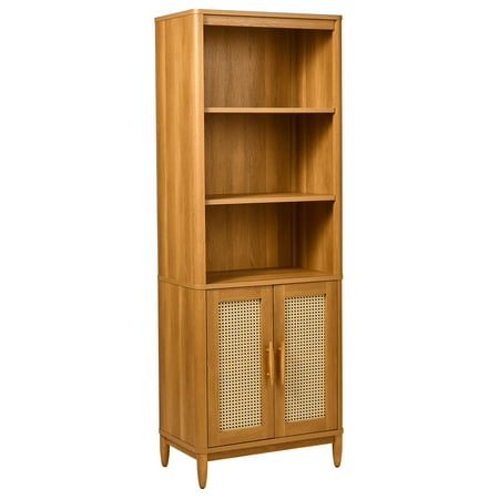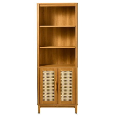 The bookcase with doors from the Better Homes and Gardens® Springwood collection offers the form and function of a library with a tropical flair. Finished in the warm hues of light honey, this living room bookcase lends its island chic taste to anywhere you need storage and style. With three adjustable shelves (one behind the double doors), this 5-shelf bookcase combines versatile storage options for treasures of all shapes and sizes. Store anything from photo albums, a collection of novels, or vintage framed artwork with a little touch of paradise. Concealed behind the two lower doors, this rattan bookcase offers another shelf for hidden storage - a perfect spot for a basket of game controllers, a collection of old VHS tapes, or a stack of board games. Whether it’s a veritable gallery of children’s picture books, or a collection of priceless antiques, this display bookcase is the perfect spot to store and display everything.
