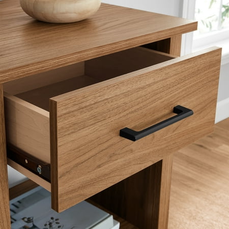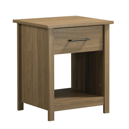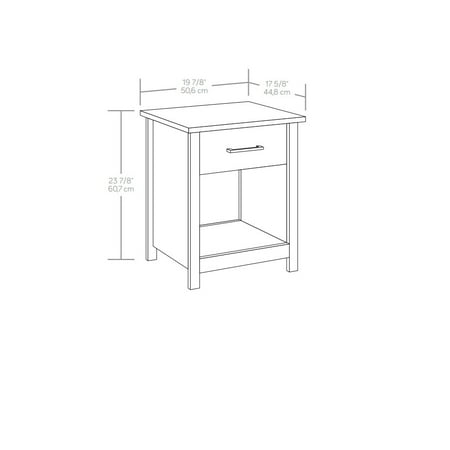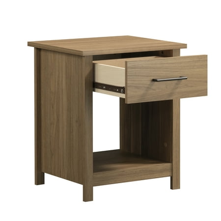 Give your bedroom a fresh look when you add the charming and functional design of this 1-drawer nightstand from the Mainstays Hillside collection. This bedside table with storage offers a spacious top surface to set items like your alarm clock, table lamp, coasters, and smartphone. This nightstand with open storage includes a spacious drawer that provides easy access for remotes, your favorite book and reading glasses. This nightstand with drawer is also compatible with Mainstays bins to turn the open storage component into additional hidden storage. Even without a fabric bin, this nightstand with open storage can stash small pillows, stacks of books, or any decorative item you wish to put on display. A bedroom nightstand doesn’t have to be hard to find. Finished in White, combining style and function is what makes the Mainstays™ Hillside single drawer nightstand a stand-out from others.