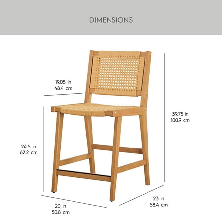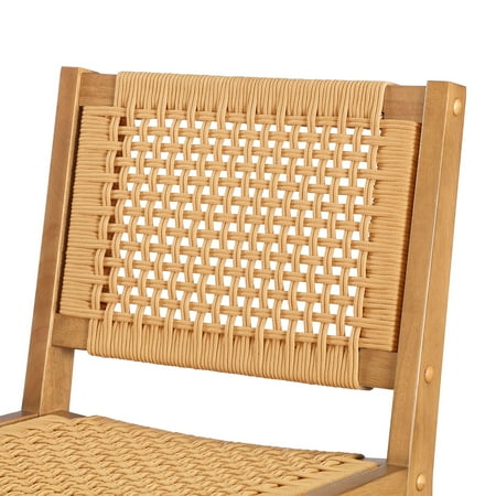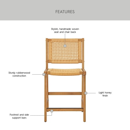 Upgrade your dining experience with the Better Homes & Gardens Vista Woven Coastal Dining Chairs. This set of two dining room chairs features a durable rubberwood construction with a warm light honey finish, perfect for adding style and practicality to your home. The handwoven seat and back create a unique and natural aesthetic, adding a touch of coastal charm to your space. Designed with a mid-century flair, these chairs effortlessly complement various decor styles, whether in dining rooms, kitchens, or cozy breakfast nooks. Each woven dining chair includes side support bars for enhanced stability during everyday use, ensuring lasting quality and comfort. Coordinate them with matching dining room furniture for a cohesive look.