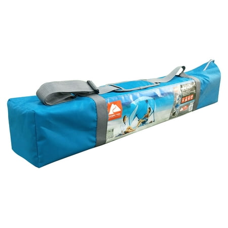 Looking for an easy way to beat the heat this summer the Ozark Trail Pop-Up Canopy offers portable shade wherever you go. Whether at the beach, campsite, or just in the backyard, this canopy sets up quick and easy. At 82.6” x 70.8” x 63”, it’s also large enough to fit two standard sized quad chairs and additional gear so you’ll never feel cramped. This canopy also features mesh windows and vents to help manage wind and increase visibility from inside the shelter. And to make transportation a breeze, the canopy includes a carry bag with an extra wide opening and an adjustable padded shoulder strap. With the Ozark Trail Pop-Up Canopy, you can have easy access to comfort and shade any time, any place.