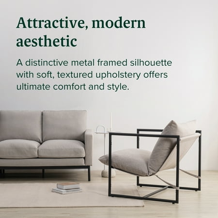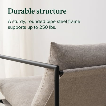 The Aidan Sling Chair makes a cool and comfy accent piece for any room of your home. Its square-shaped steel frame gives it a versatile modern look. It is available in a variety of upholstery colors. Textured fabric cushions with shredded foam will keep you comfortably seated for hours. Its wide seat is designed to give you plenty of room. A sturdy steel frame is built to support up to 250 lbs so you can relax carefree. This chair ships to your door in one compact box with all parts, tools, and instructions. In under 30 minutes, you can assemble it stress-free. Whether using it to curl up with a good book or catch up with friends, the Aidan Sling Chair creates the comfy, contemporary atmosphere you’re looking for.
