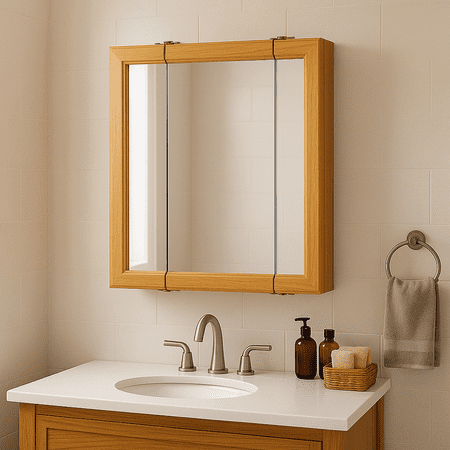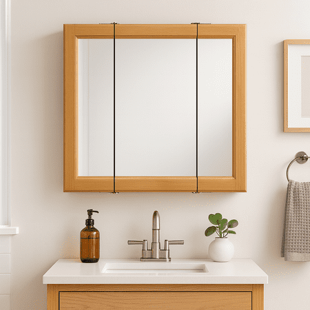 The Design House Claremont Medicine Cabinet combines function and style with three mirrored doors framed in honey oak. A water-resistant seal adds durability, making it perfect for bathroom use. Inside, two fixed shelves provide convenient storage for everyday essentials like hair products, toothbrushes, cosmetics, and medications—helping keep your countertop neat and organized. The cabinet comes fully assembled and carefully packaged for safe delivery. Designed for damp environments, this medicine cabinet is ideal for bathrooms and other moisture-prone areas. Manufactured by Design House, a trusted source for quality home products to fit every style and budget.
