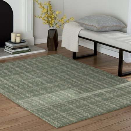 Introducing the Better Homes & Gardens 5x7 Green Plaid Wool Rug - a classic touch for your indoor spaces. Its neutral green color and timeless plaid pattern bring warmth to your home. Crafted with hooked wool construction, it's not only durable but also inviting underfoot. This rug, sized at 5'x7', is perfect for indoor use. Elevate your decor with the understated elegance of the Green Plaid Wool Rug and enjoy its cozy charm in any room.