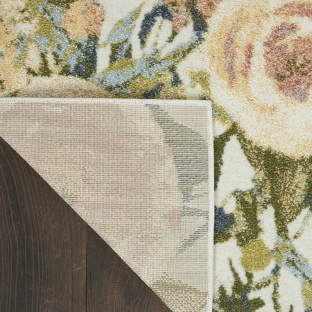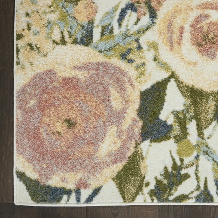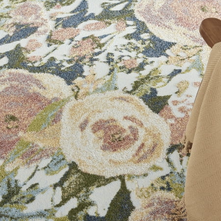 Invite the Trance Collection of area rugs to cast a spell of beauty in your contemporary or artistic home. This chic and original area rug collection offers a fresh variety of abstract and floral designs in exciting, colorful combinations of sophisticated transitional hues. The designs gain texture from a high-low weaving technique that gives emphasis to select elements of each special rug. Whether your home style is modern elegance or casual contemporary, you will find your ideal choice in the Trance Collection. Power-loomed in polypropylene and polyester for easy care in a low-pile, serged edge rug that is soft, textural, and durable. This Trance area rug creates enchantment with bold orbs of abstract flowers, beautifully detailed with high-low pile. The soft texture and subtle, transitional hues of green, pink, and blue on ivory make a statement of modern beauty for the contemporary or artistic home.