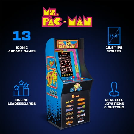 Transform your space with the iconic Ms. PAC-MAN Classic SE Arcade Game from Arcade1Up. Featuring a seamless adjustable riser (sold separately), this machine lets you customize your at-home gaming setup, whether you want a compact look or a full-sized home arcade experience. It’s the perfect addition to any game room or home decor. Relive the golden age of gaming with 13 legendary arcade games like Ms. PAC-MAN, PAC-MAN PLUS, GALAGA, DIG DUG, and more! Challenge players worldwide on WiFi leaderboards and enjoy stunning visuals on a 15.6-inch IPS color monitor with dual speakers. With authentic joysticks and buttons , this machine is a must-have for all families and retro gaming fans alike.