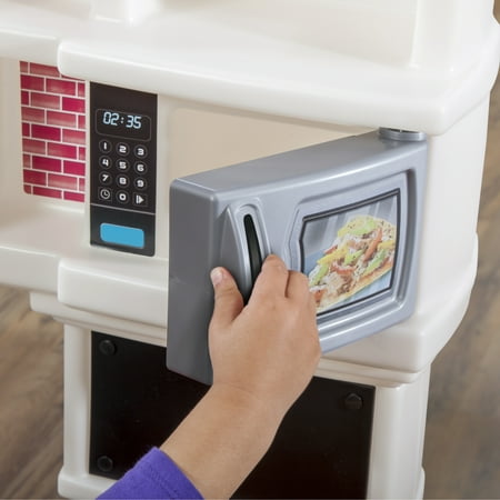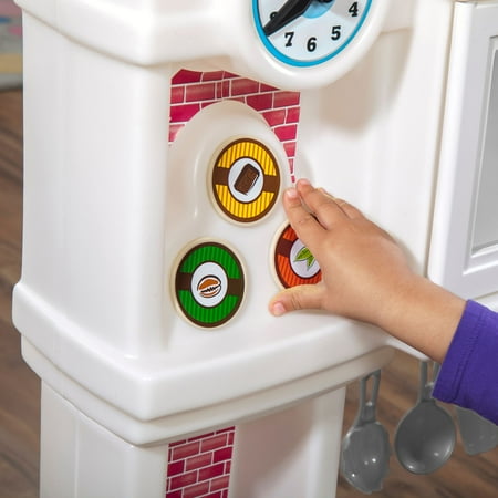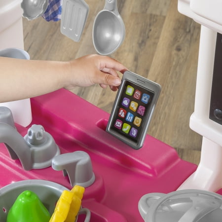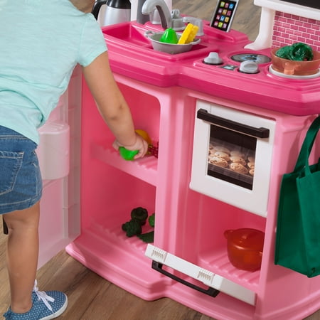 Junior foodies will be dishing' up sweet treats for years to come with the Great Gourmet Kitchen Pink by Step2. This play kitchen set for kids features a contemporary design to match today's modern home, including a double oven for double the make and bake pretend fun! With a large play kitchen countertop, toddlers will be able to share the pretend play fun with their friends. The imaginative play fun never ends with this kid's play kitchen which includes a 35 piece accessory set to make the fun more realistic.