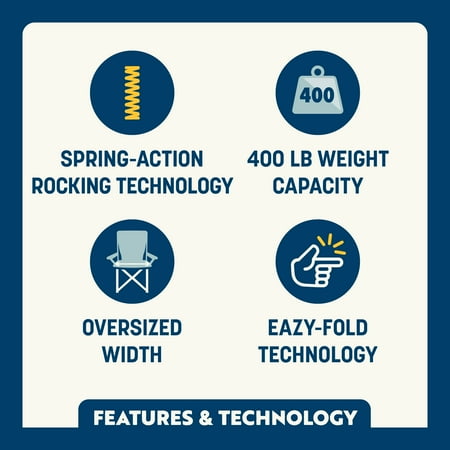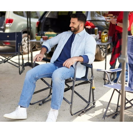 Unwind with extra room to relax in the GCI Outdoor Freestyle Rocker XL. Featuring patented Spring-Action Rocking Technology for a smooth rocking motion, a wider seat, and an increased weight capacity of 400 lbs., it offers the ideal combination of spacious comfort and robust durability. The ergonomic design promotes a natural seated position, with padded armrests providing additional support for both sitting and standing. On warm days, a breathable mesh panel in the backrest helps keep you cool and dry, while the built-in beverage holder and phone pocket keep essentials within reach. Crafted from powder-coated steel with a convenient carry handle, the Freestyle Rocker XL is ready for all your outdoor adventures – from cheering on the sidelines to camping trips to ultimate tailgate parties. Plus, Eazy-Fold Technology makes setting up and packing up hassle-free.