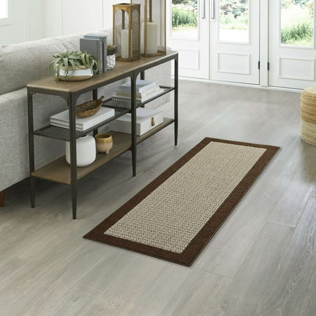 Add style and functionality to your home with the Mainstays Traditional Faux Sisal Border Area Rug or Runner Rug. There are five border color options which include Gray, Beige, Brown, Red and Black. With multiple size options, it's a breeze to find the perfect rug for your space whether it be a living room, bedroom, dining room, kitchen, or home office. Quality crafted of 100% olefin yarn, this rug will stand up in even the heaviest of traffic areas with its stain and fade resistance. The Mainstays Faux Sisal Rug Collection features non-skid latex backing on all sizes to help keep the rug in place on your floors. Multiple size and color options are available to purchase individually or in 3-Piece Rug Sets.