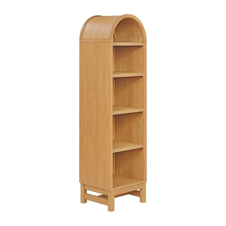 The Better Homes & Gardens Juliet Narrow Arch Bookcase is a perfect blend of form, function, and flair for your home. This bookcase is a statement of elegance and versatility, designed to enhance any interior décor. With its rounded arch top, the Juliet Narrow Arch Bookcase captivates with architectural grace and a modern twist, available in two chic finishes: Light Honey and Black. These options ensure a perfect match for your personal style, whether you're aiming for a bright and airy vibe or a sleek, sophisticated look. The Juliet ladder bookcase stands out with its five spacious shelves, each adjustable to accommodate your collection of books, cherished collectibles or decorative pieces. This flexibility makes it an ideal solution for those who love to refresh their spaces or display an ever-changing array of items. The shelves are built to be sturdy, ensuring that your treasures are displayed securely and stylishly. Crafted with durability in mind, the Juliet Narrow Arch Bookcase promises long-lasting quality. Whether it finds a place in your living room, study, or hallway, this modern bookshelf is designed to elevate your space and showcase your style with sophistication. Make the Juliet part of your home and enjoy the perfect combination of beauty and practicality it brings to every corner. The Better Homes & Gardens Juliet Narrow Arch Bookcase more than a bookcase – it's a centerpiece that reflects your taste and complements your lifestyle.