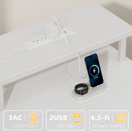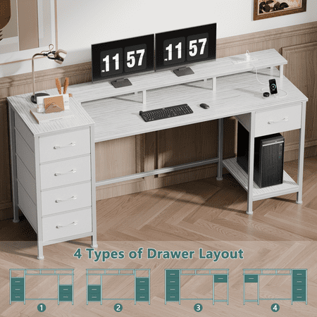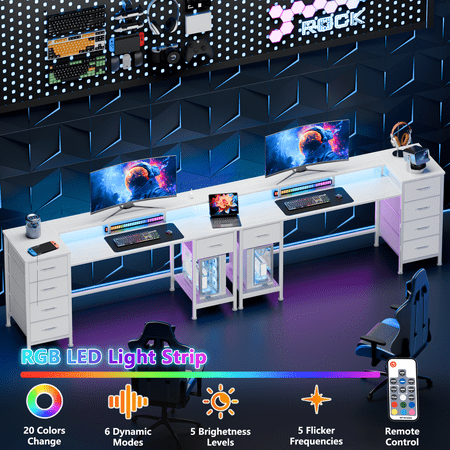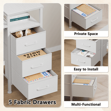 Elevate your setup with the Satifur 55-inch multifunctional computer desk. Engineered to be the ultimate gaming desk with LED lights and a built-in charging station, it powers your productivity and play. This versatile Satifur computer desk features 5 adjustable fabric drawers and 2 open shelves for maximum organization. The robust build and ergonomic design make this Satifur gaming desk a durable and comfortable choice for any home office or bedroom. Specifications: Dimensions: 55.2" L x 18.8" W x 35" H Color: White Weight Capacity: 180 lbs