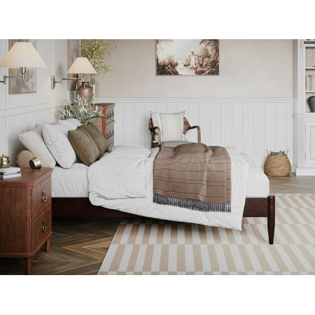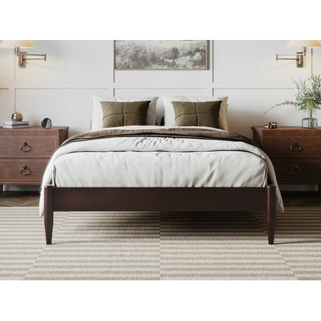 Crafted from solid wood with a mid-century modern touch, the Pasadena Low Profile Platform offers lasting support and timeless appeal. Available in Espresso, White, Walnut, and Light Toffee to suit any space. With multiple size options: Twin XL, Twin, Full, Queen, and King, you can find the perfect fit for any room in your home. Crafted with wood slats, the bed does not require a box spring to support your mattress. Standing at a height of 14 inches, this bed offers ample room underneath for discreet and convenient storage. With a durable design and easy assembly, the Pasadena Low Profile Platform is the perfect addition to your cozy contemporary bedroom.
