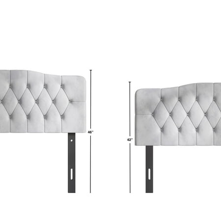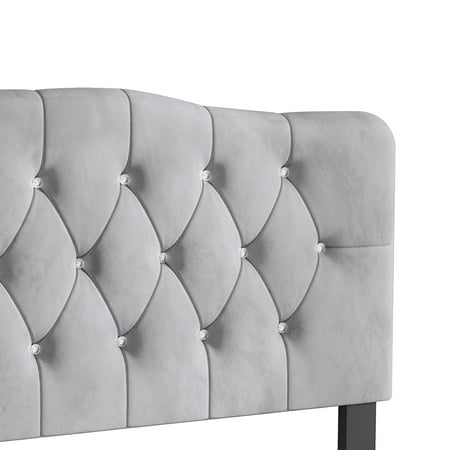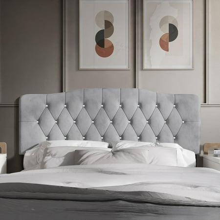 Elevate your bedroom with the Velvet Button Tufted Curved Upholstered Adjustable Headboard in Silver Grey. This queen-sized headboard features luxurious soft-touch velvet upholstery and elegant crystal diamond button tufting that adds timeless modern style. Its gently curved silhouette enhances any bedroom decor, while the adjustable height allows a perfect fit with your bed frame and mattress. Easy to assemble with included hardware, this headboard offers both comfort and sophistication, making it an ideal focal point for your sleeping space.