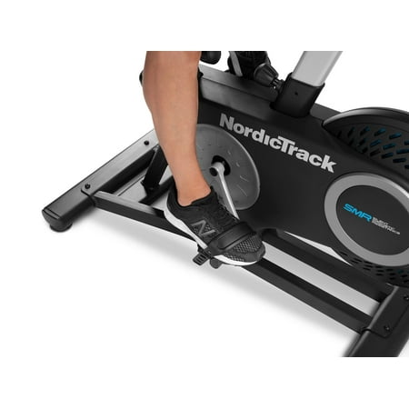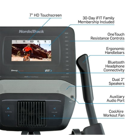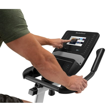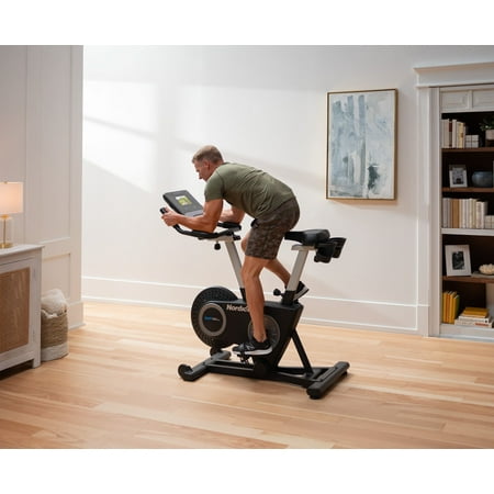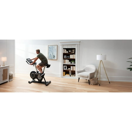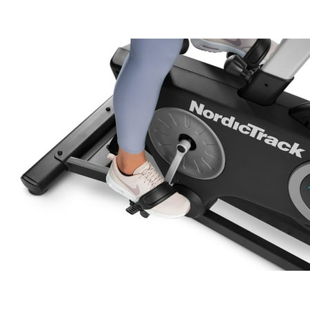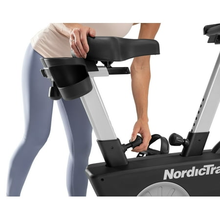 Get a world-class cycling experience with the NordicTrack Studio Bike powered by iFIT. With an included 30-day iFIT Family Membership, you can create five individual workout profiles that each have access to a vast library of LIVE and on-demand video workouts taught by expert personal trainers. Transform your home gym into a boutique Studio Class, burning calories alongside virtual classmates as your iFIT Trainer coaches and motivates you to success. Embark on a virtual journey around the world by selecting one of the thousands of Global Workouts filmed on location across all seven continents. As you exercise, your iFIT Trainer will automatically adjust your resistance to meet their workout requirements or mimic real-world terrain, creating a fully-immersive workout experience in the comfort of your home. A 7” smart touchscreen provides a high-definition display that allows you to take in the breathtaking landscapes and pulse-pounding light shows of iFIT. If you want to override your trainer, you can cycle through 22 levels of digital resistance to customize your workout to your preferences. An oversized cushion seat and large ergonomic pedals provide a comfortable foundation that can be adjusted to fit your body and exercise style.