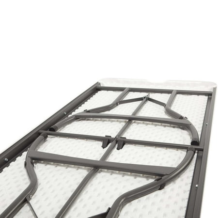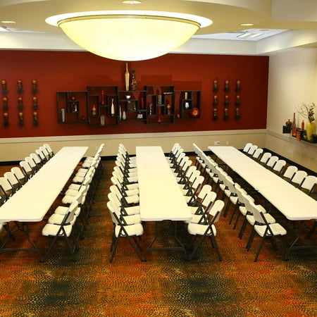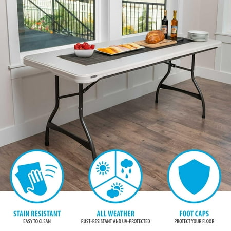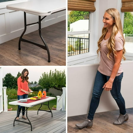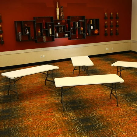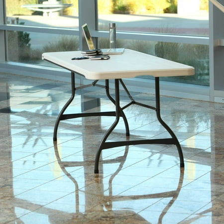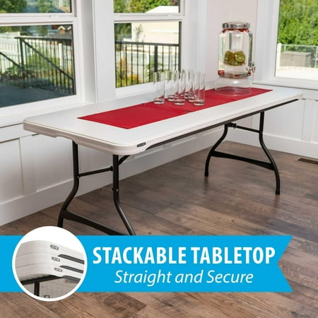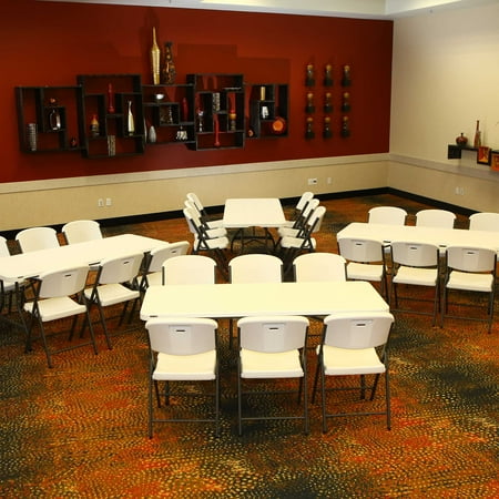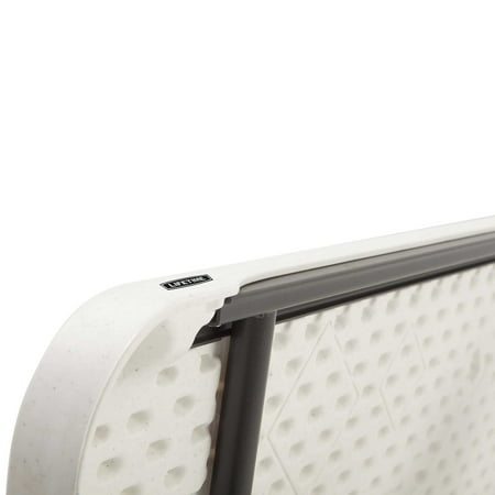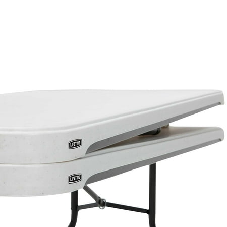 Lifetime 6-Foot Commercial Nesting Folding Table - Features a 72 in. x 30 in. molded tabletop (almond) with a round folding frame (bronze). This table is made with premium steel, and has a nesting design that allows tables to stack together. This table is drop shippable (individually packaged). 10-year limited warranty. Lifetime 6-Foot Commercial Folding Tables are constructed of high-density polyethylene and are stronger, lighter and more durable than wood tables. The innovative nesting design allows tables to fit snuggly together, and helps keep stacked tables straight and sturdy. This ingenious architecture saves 20% on the stacking height compared to previous models. Our tables are UV-protected with all-weather construction for both indoor and outdoor use. The patented steel frame design provides a sturdy foundation and is protected with a powder-coated, weather-resistant finish. Our Premium Steel creates a lighter table with increased strength and stability. Built for the rigors of heavy-duty commercial use, Lifetime Folding Tables exceed challenging BIFMA standards and are backed by a ten-year warranty.