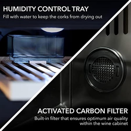 Measures: 22.25L x 11.75W x 34H Capacity: 19 standard 750ml wine bottles Tempered double pane gray-smoked glass for enhanced UV protection with security lock and key Digital LED temperature control with temperature range from 40ºF – 72ºF Powerful fan-circulated compressor cooling ensures even temperature distribution. Bottom shelf: 4 bottles See more product details