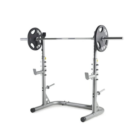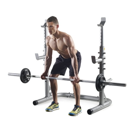 With the Gold's Gym XRS 20 Olympic Workout Rack you can train like the pros in the privacy of your own home. Compatible with Olympic-sized weight sets, the Gold's Gym XRS 20 Olympic Workout Rack features adjustable uprights and safety spotters that can accommodate multiple heights and comfort levels so it can be used by several people in a household. A squat rack helps isolate the muscles in your legs and allows you to focus more closely on the muscles in your lower body. Power catch uprights are built to withstand even the toughest workouts. The Gold's Gym XRS 20 Olympic Workout Rack will allow you to perform many different weight exercises like bench presses, squats, and deadlifts. When the workout is over you can store your weights (sold separately) in the conveniently integrated plate storage unit. Enjoy strength training from the comfort of your own home with the Gold's Gym XRS 20 Olympic Workout Rack.