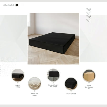 The Castle Place sturdy and firm wood structure box spring designed for strong mattress support and ease of use. This 7.90 inch height box spring provides plenty of support for any mattress. This box spring is specifically designed to handle all kinds of mattresses, even heavier ones like memory foam and latex. 9 solid wood slats are covered in a durable linen fabric to keep your mattress in great condition for years to come. The black linen fabric panels create an upholstered look that complements your mattress and bed frame. The box spring comes with various size in Twin, Full, Queen and King. This quality basis ensures comfort and safety, with the highest standards in durability, quality, and aesthetics.