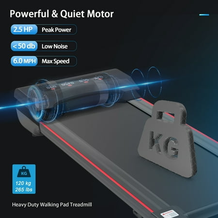 Euroco are committed to upgrading and updating treadmill products, using high-quality materials that are safety and more reliable, and will let you enjoy working out. Walking Pad Treadmill brings you a different sports experience. It adopts a design that does not require installation and can be used out of the box, saving you the trouble of assembly. Elegant design and beautiful matching are ideal gifts for friends.Our weight capacity is up to 300 pounds, so you don’t have to worry about him having support issues.The electric treadmill is fully assembled when it arrives, and it can be used directly after unpacking and plugging in the power supply! It is easy to store under the sofa and the bed to save space. With 2 moving rollers at the bottom easy to move, it can be placed in a small corner of the home. saving you time,energy and space The best match for running. I t deserves a try. 【Powerful & Quiet Motor】This walking pad treadmill with a powerful 2.5HP quiet motor, allowing to load big weight capacity up to 300 lb. The walking pad treadmill delivers natural, smooth and consistent working, as well as keeps people away from noise at home or office. 【LED Display & Remote Control】You can track speed, distance, time and calories through the LED display in real time. This mini treadmill allow you to select different speed as per your physical condition and exercise program, available wide speed range 0.6 – 6.0 mph. 【Shock Reduction & Super Capacity】With 5 layer shock-absorbing structure, the tre a dmills running belt tends to provide noise reduction and safe cushioning for your joints and muscles. This portable treadmill is sturdy and durable to provide good stability for the user weight up to 300lbs. 【Safe to Use】The running deck width of 20.5" offers a comfortable area for exercise. W ide side rails provide a safe area when the users stop workouts temporarily or instantly.【 Installation-Free】Treadmill machine arrives with fully assembled already, and can be used directly after unboxing, getting you up and running quickly. 【Easy to Move】With 2 transport wheels installed on the desk treadmill, it is easy to be moved and placed under sofa, table or bed for small space saving.
