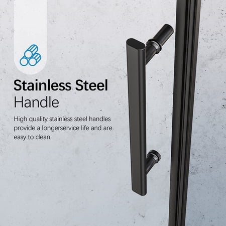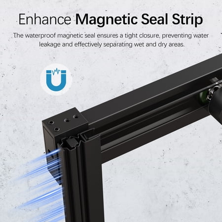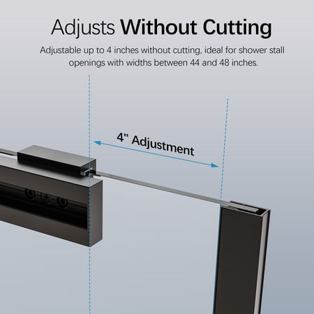 1.Single Bypass Sliding Design:No-cut installation with positioning template; choose left/right slide. Frameless, smooth-quiet operation, space-saving to maximize bathroom area. 2.Stainless Steel Handle:High-quality stainless steel for longer service life; easy to clean and maintain. 3.Enhanced Magnetic Seal Strip:Waterproof magnetic seal ensures tight closure; prevents leakage, separates wet/dry areas. 4.Adjustable Width (No Cutting):Adjusts up to 4 inches; fits 44-48 inch shower stall openings perfectly. 5.Superior Waterproofing:Corrosion-resistant aluminum threshold; anti-splash bottom guide block boosts waterproof performance.