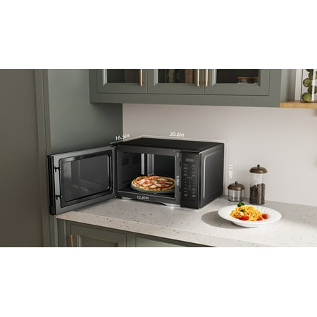 Introducing the Mainstays 1.1 Cu. Ft. Countertop Microwave Oven (Model: MS8436193153-03) – a powerful and versatile addition to any kitchen. This 1000-watt microwave offers 10 adjustable power levels and a 30-second one-touch option for quick, convenient cooking. With its weight and time defrost functions, defrosting food has never been easier. Enjoy the 6 express-cook buttons for effortless cooking of popular items, including potato, popcorn, pizza, beverage, frozen dinner, and reheat. The child safety lock provides added security, and the glass turntable ensures even, consistent cooking. The easy-to-read LED display and auto menus make navigating settings simple. Perfect for families and everyday use, the Mainstays 1.1 Cu. Ft. Microwave in sleek black is designed to meet all your cooking needs.