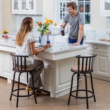 Enhance your dining or bar area with this 2-piece set of adjustable height bar stools, featuring a sleek, modern design. Switch between 24" and 29" seat heights with easy-to-change legs, perfect for both counter and bar-height tables. The comfortable swivel seat and durable metal frame make these stools ideal for home or commercial use.