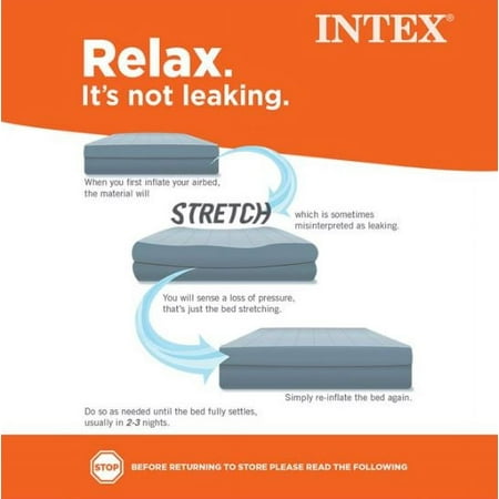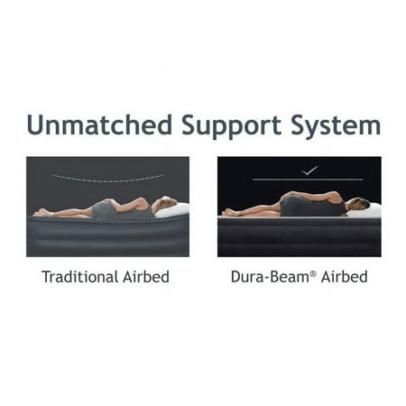 Provide unexpected guests with a comfortable place to get a good night of sleep with this Intex Queen 20" Dura-Beam Deluxe Raised Air Mattress with Built-in Pump. The unit comes equipped with many useful features, including flocked sleeping surface with fiber-tech construction material. The Intex Deluxe Raised Queen air mattress also has a built-in pump, which helps inflate and deflate the bed quickly. It is big enough for your guests to stretch out and with the 20" mattress height it makes it easy to get in and out of the bed. It even includes a carrying bag for easy travel and compact storage when it's not in use. Because it has Dura-beam construction it is 15 per cent lighter than traditional airbeds, so transportation is easy.