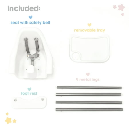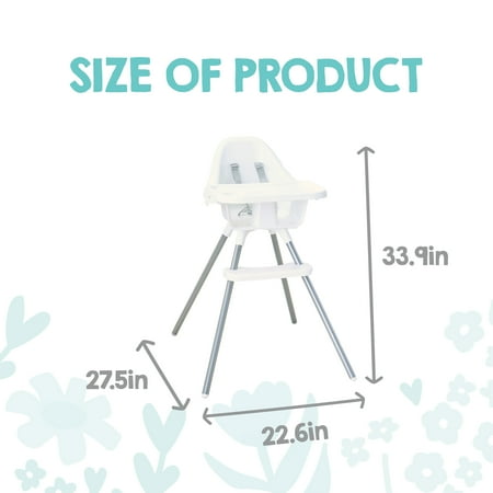 The Regalo Baby Basics™ High Chair is a sleek and comfortable highchair for your little one. It’s sturdy and durable while still being lightweight, making it easy to move around your home. The plastic and metal construction of the highchair was designed with comfort and safety in mind. The non-bulky, simple design of our Baby Basics™ High Chair easily fits into any home and makes storing stress-free. It comes with an attachable tray to make dining easier, with raise edges and a special section for their sippy cup. The Baby Basics™ High Chair gives you peace of mind at mealtime.